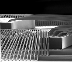 当社は長年構築した金属加工技術をもとに、高精度圧延で高純度のステンレス鋼板を厚さ10ミクロンレベルまでの箔化が可能です。代表的な用途はハードディスクドライブのサスペンションと排ガス浄化用メタル担体です。前者は数ナノメートルを制御する安定したバネ性が要求される超厳格品で、世界で8割以上のシェアを占めています。また後者は、自動車や二輪車の排気ガス浄化用触媒保持部材として高温耐久性、低圧力損失などを有しており、今後も地球環境に貢献していきます。